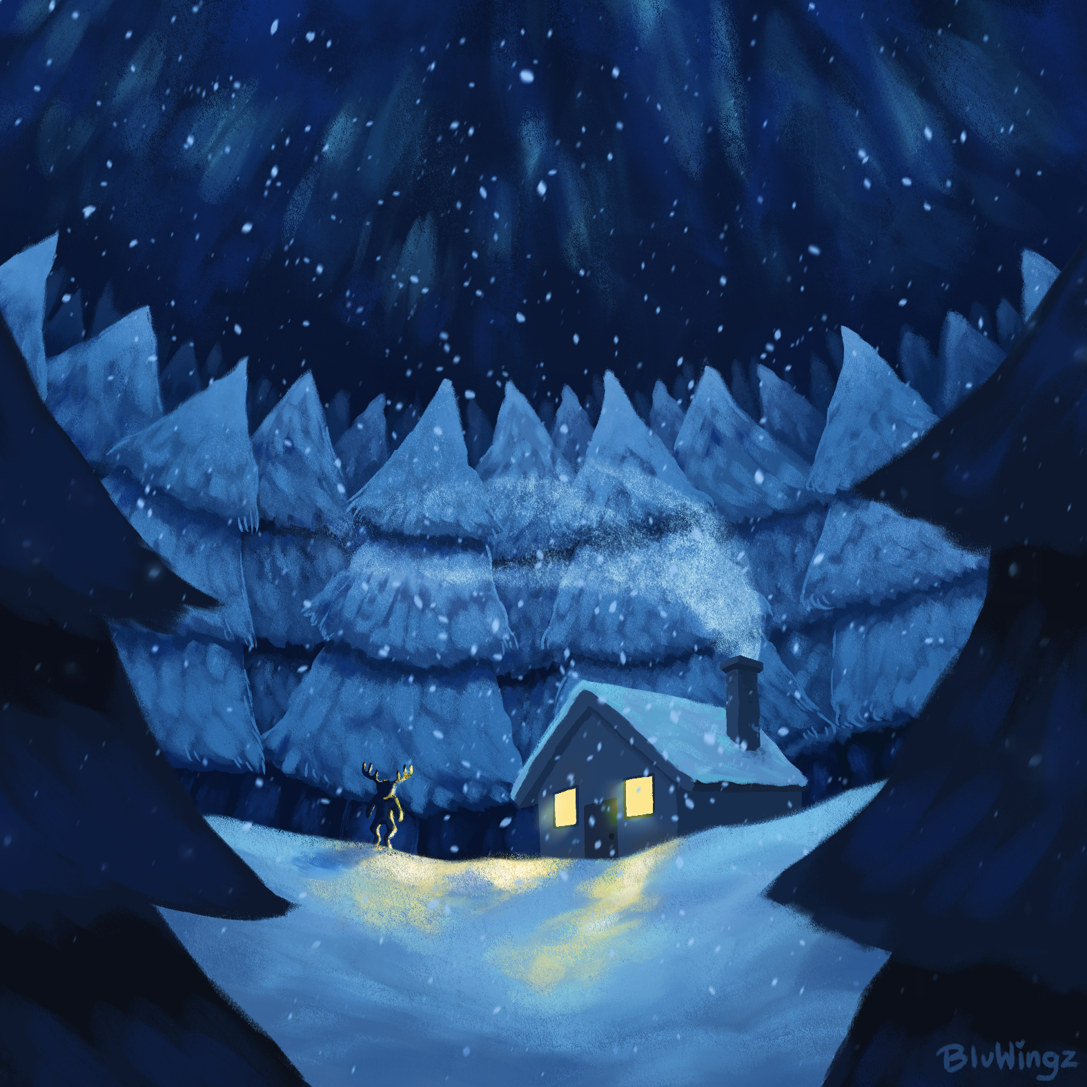 I don't usually paint but this wonderful track motivated me to. A solitary monster enjoying the snowy night.