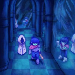 I had a vision of Kris and Noelle lost in a mirror maze. Kris is trying to break free from the player and get to the real Noelle, but they keep getting turned around in the ice corridors.