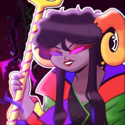 ok in all seriousness tho, i think Damara, both versions of her, might be the most tragic character in all of Homestuck, as well as the one that gets misunderstood and mischaracterized the most. with this piece i wanted to picture an alternate timeline where Demoness not only gets the chance to get revenge on those who hurt her, but also gets to be a total BADASS while at it. not in a "i'm the big bad now" kind of way, but in a "oh those bad guys? yeah i took care of them" sort of way, delivering some well deserved justice, feeling pretty proud of herself about it, then just taking some time to chill