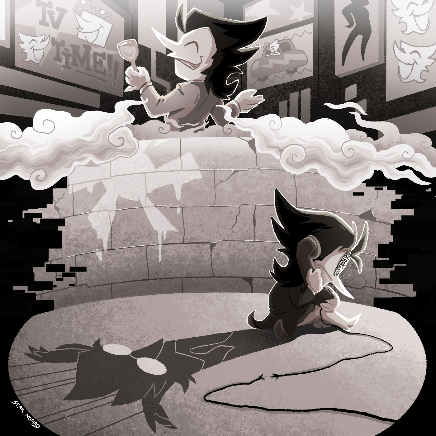 spamton is very near and dear to me, daresay even my favorite character of all time, so any chance to draw him had me excited. the way his backstory and personality is presented to you is PEAK. i wanted to make something that matched the melancholy tone of the track, thus the decision to draw this in sepia tone. so if you feel sad, GOOD